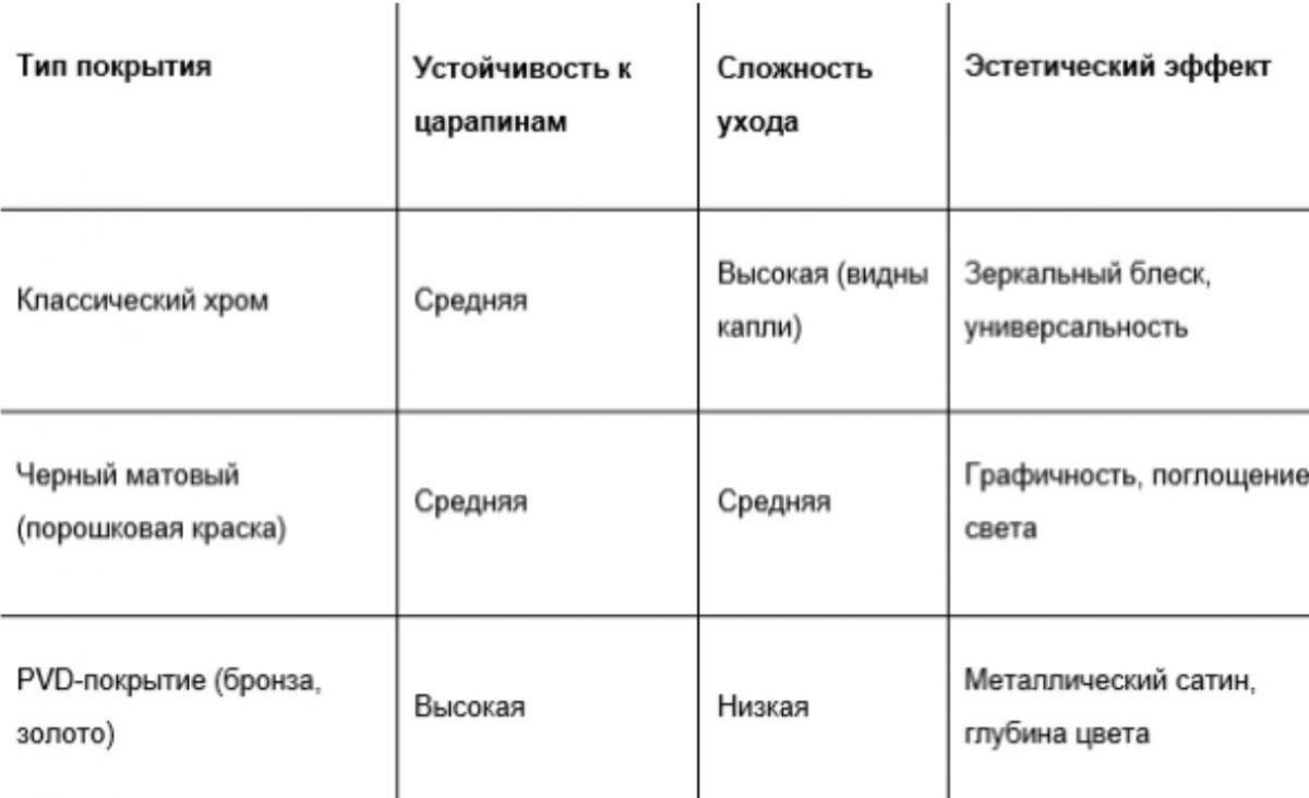 Минимализм, матовые текстуры и сложные глубокие оттенки, такие как графит, черный муар или брашированная бронза, формируют эстетический код текущего года, вытесняя привычный хром.